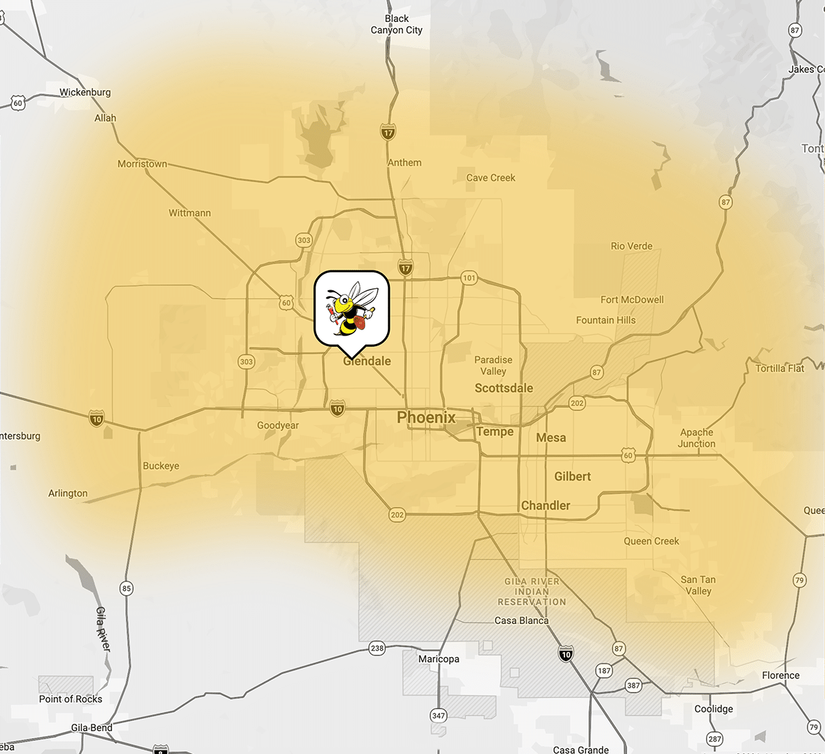 When you’re looking for an HVAC technician, electrician, or plumber in Glendale, AZ, and nearby areas, you’ve come to the right place. Bumble Bee serves the Greater Phoenix Area, with a wide range of cities and towns within our service area.